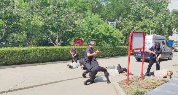 演練內(nèi)容以5名不法分子企圖在銀行網(wǎng)點(diǎn)門(mén)口乘押款員裝卸款箱時(shí)進(jìn)行搶奪款箱為背景,開(kāi)展防盜搶預(yù)案演練。面對(duì)歹徒,車(chē)組人員各司其職,快速反應(yīng),駕駛員立即向駐地隊(duì)長(zhǎng)報(bào)告,大隊(duì)長(zhǎng)迅速下達(dá)啟動(dòng)應(yīng)急預(yù)案的指令,并向銀行保衛(wèi)部門(mén)報(bào)告;同時(shí)守押隊(duì)員毫不畏懼,迅速行動(dòng)控制歹徒,確保人員及款箱安全。