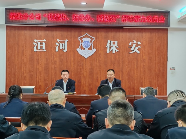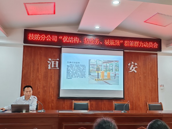 為認(rèn)真落實(shí)公司“優(yōu)結(jié)構(gòu)、拓業(yè)務(wù)、破瓶頸”活動(dòng),營造干事創(chuàng)業(yè)的濃厚氛圍,進(jìn)一步推動(dòng)技防分公司發(fā)展提質(zhì)增效,4月20日上午9:00,技防分公司在公司南二樓會(huì)議室召開“優(yōu)結(jié)構(gòu)、拓業(yè)務(wù)、破瓶頸”群策群力動(dòng)員會(huì)。分公司班長、中隊(duì)長及骨干人員共30余人參加了會(huì)議。會(huì)議由技防黨支部書記侯永杰主持。
