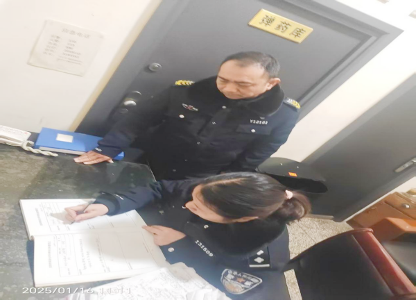 1月16日上午,安陽市龍安區(qū)太行小區(qū)派出所社區(qū)民警王靜靜到守押十二大隊(duì)相州中隊(duì)進(jìn)行槍彈安全檢查,副隊(duì)長(zhǎng)李志民全程陪同。